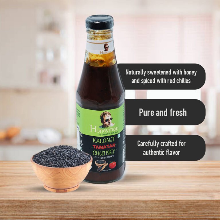 | Add exotic flavour to every meal with Honeyman's Kalonji Tamatar Chutney with Honey — a unique blend of tangy tomatoes, aromatic kalonji seeds, and natural honey sweetness. A versatile condiment perfect with snacks, meals, and street food. 100% natural ingredients. Elevate your dining experience. Shop now! |