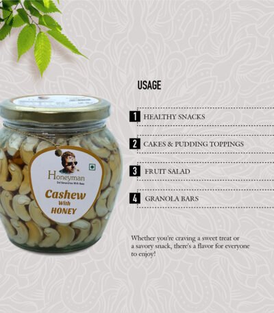 | Treat yourself to Honeyman's Cashew with Honey — buttery premium cashews coated in pure golden honey for an irresistible, wholesome snack. Rich in healthy fats, magnesium, and natural sweetness, this crunchy delight is perfect for snacking or gifting. A heavenly match of flavour and nutrition. Order today! |