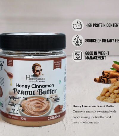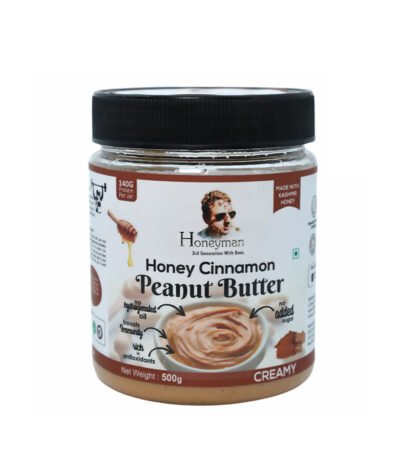 A delicious and healthy fusion — Honeyman's Honey Cinnamon Peanut Butter combines creamy roasted peanuts, pure honey, and aromatic cinnamon. Naturally sweetened and spiced, it's perfect for toast, oatmeal, and baking. Packed with protein and natural goodness. Shop Honeyman today!