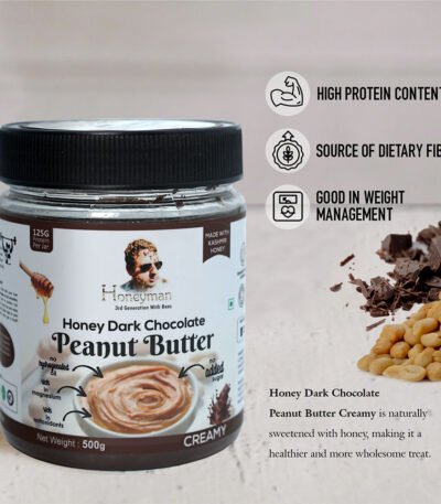 Decadence meets nutrition in Honeyman's Honey Dark Chocolate Peanut Butter — a luxurious blend of roasted peanuts, pure honey, and rich dark chocolate. High in protein and antioxidants, perfect for spreading, dipping, and baking. A guilt-free indulgence. Order Honeyman today!
