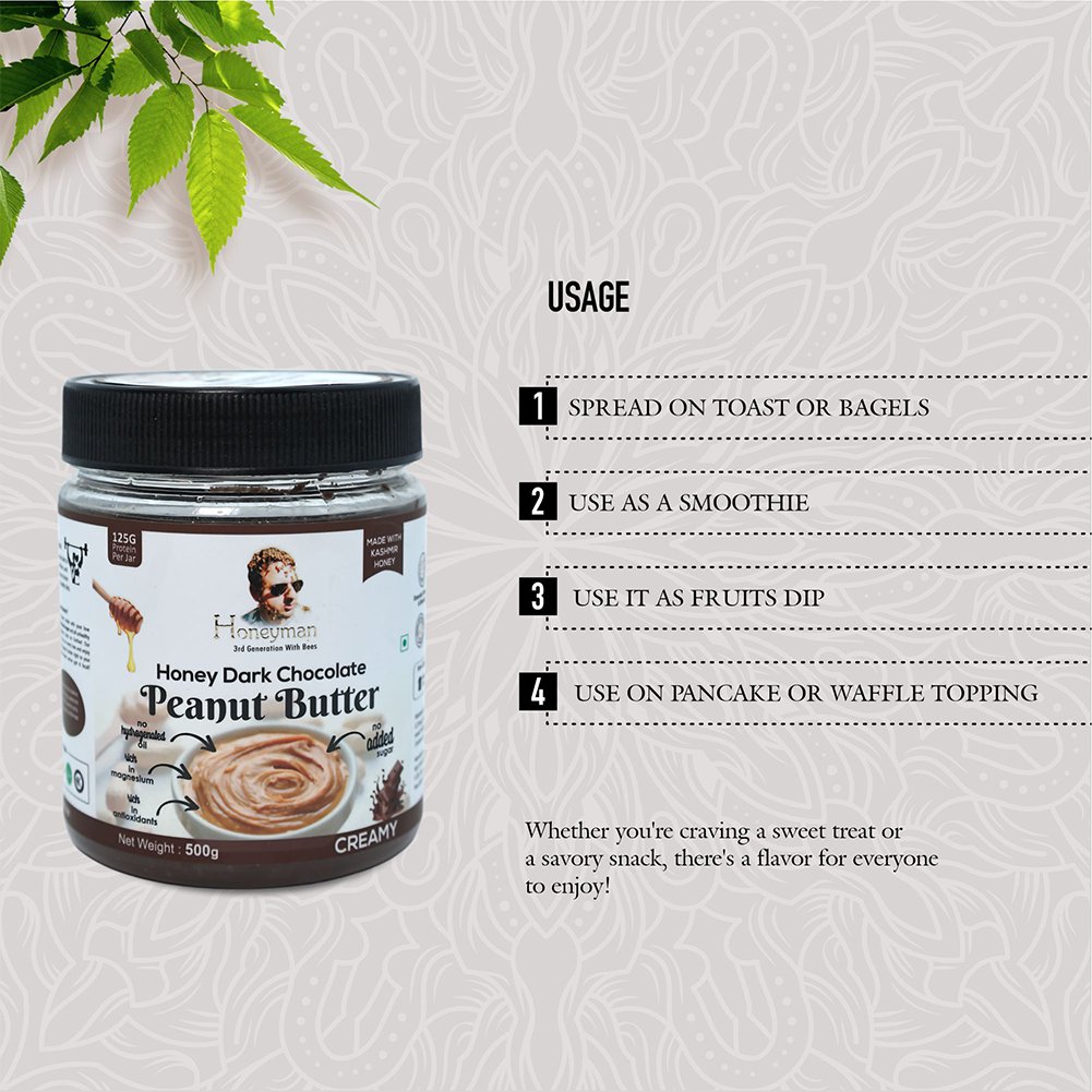 | Decadence meets nutrition in Honeyman’s Honey Dark Chocolate Peanut Butter — a luxurious blend of roasted peanuts, pure honey, and rich dark chocolate. High in protein and antioxidants, perfect for spreading, dipping, and baking. A guilt-free indulgence. Order Honeyman today! |