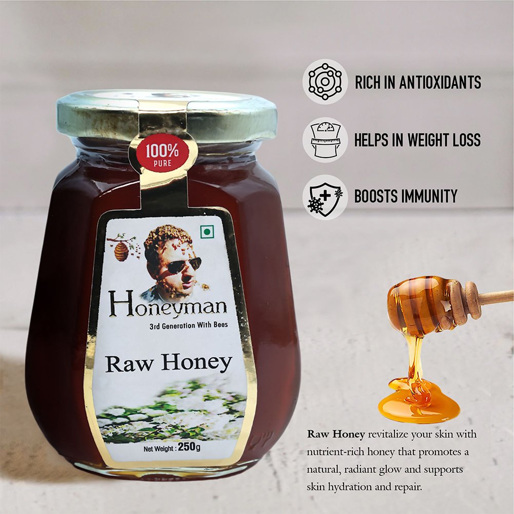 Unfiltered, unprocessed, and unbeatable — Honeyman’s Raw Honey is pure nature in every spoonful. Contains natural pollen, propolis, enzymes, and antioxidants for maximum wellness benefits. The most authentic form of honey available. Perfect for health-conscious families. Order Raw Honey today!